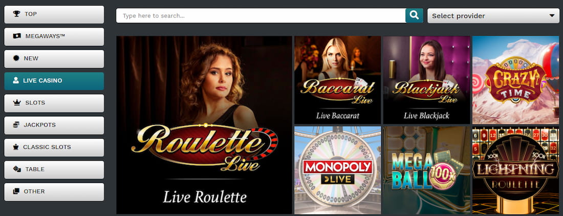 The online casino features a wide range of games. There are online slots that come with high RTPs and interesting bonus features. Some available titles include Starburst, Guns âNâ Roses, Gonzo's Quest, Gods of Olympus, Money Train, Kraken Conquest, Conan, and Marcos. Jackpot slots like Mega Fortune are also available. If you like table games, you will find titles like Roulette, Poker, Craps, Baccarat, and Blackjack in multiple variants. There is also a live casino with games such as Live Blackjack, Live Roulette, Live Poker. Super Sic-Bo, Ultimate Texas Holdâem, and Dream Catcher.